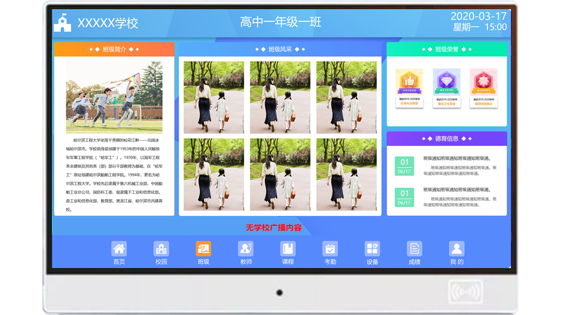 智慧班牌是展示學(xué)校綜合實(shí)力的一扇窗口,是樹(shù)立和贏得社會(huì)良好評(píng)價(jià)的重要媒介;